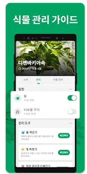 식물, 나무, 꽃 식별; 맞춤형 관리 가이드; 질병 자동 진단