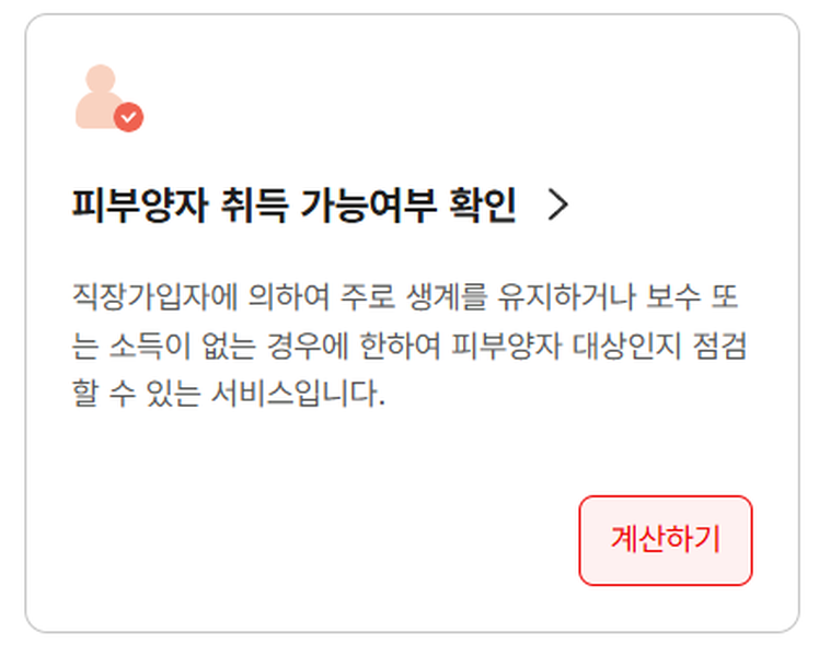 피부양자로 등록 가능한지 여부를 사전에 확인할 수 있는 기능은, 직장가입자의 가족 구성원이 별도의 보험료 부담 없이 건강보험 혜택을 받을 수 있는지를 판단하는 데 큰 도움이 됩니다.