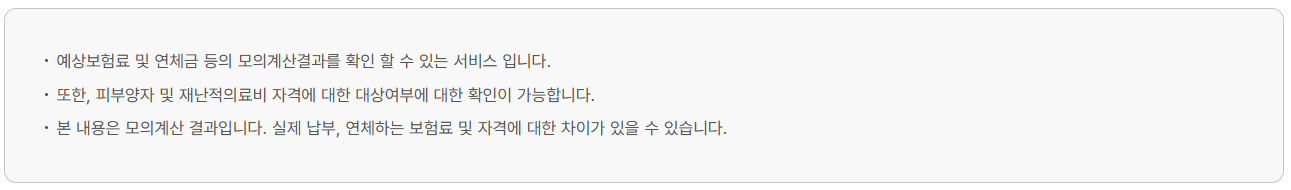 - 경감요소 반영: 노인, 장애인, 한부모가정 등의 보험료 경감 혜택은 자동 반영되지 않을 수 있으므로 별도로 확인해야 합니다.